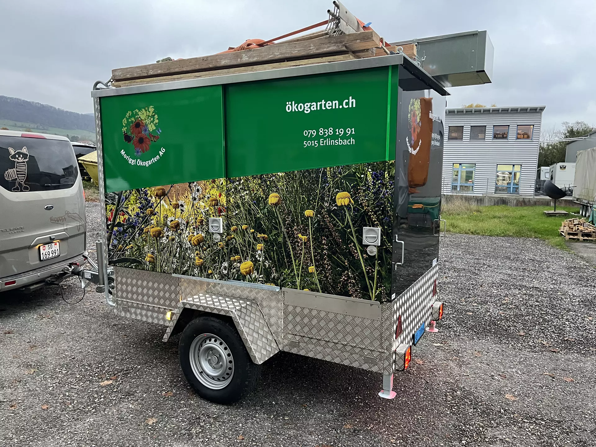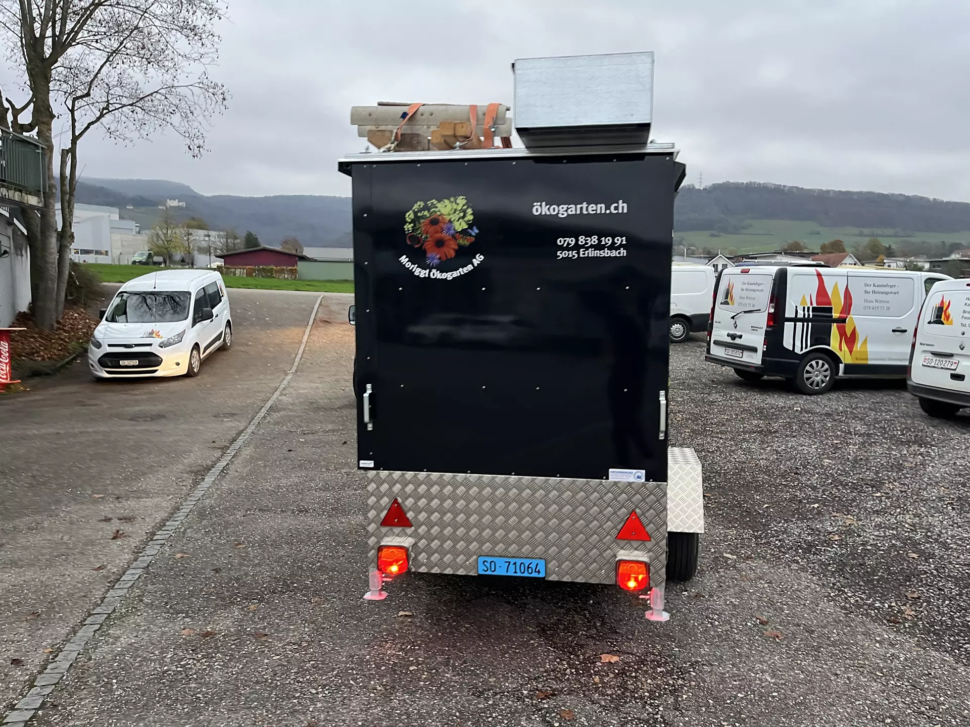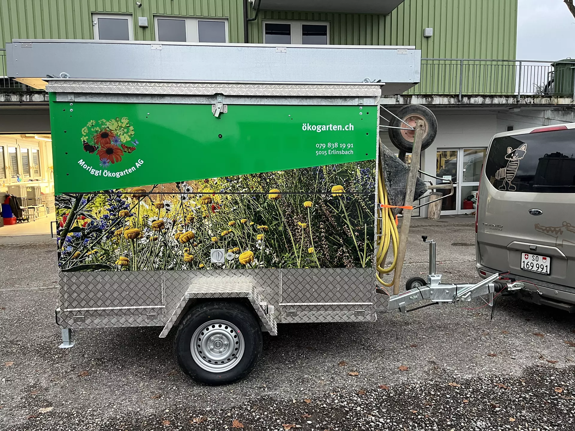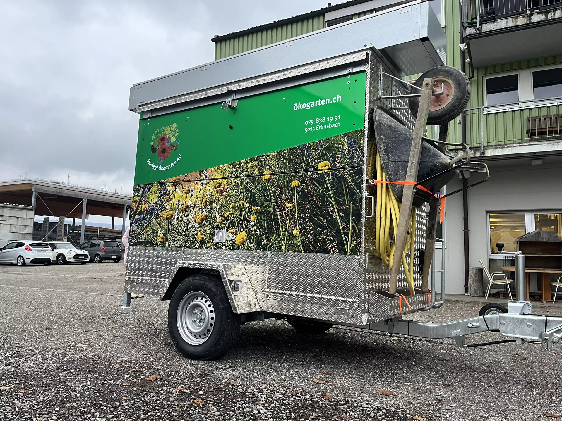 Das neue Herzstück im Betrieb. Auch für den Gartenbau ist so alles sauber in einem Werkzeuganhänger verstaut.