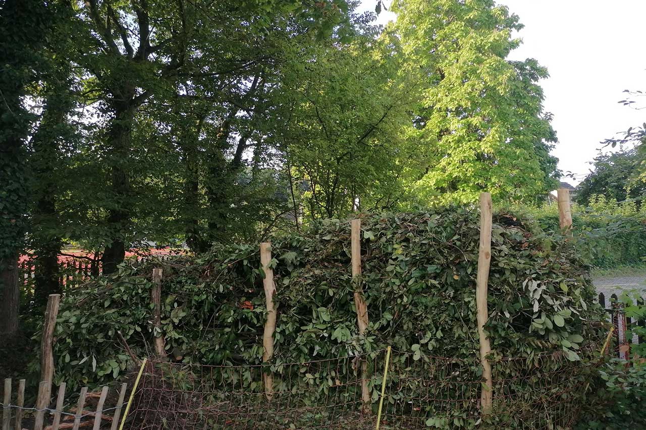 Wir durften diese sterbende Thujahecke roden und als Benjeshecke aufschichten.