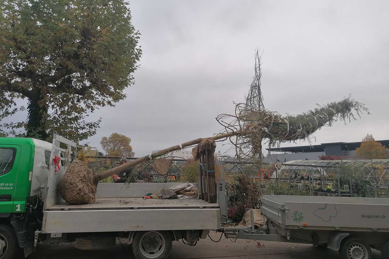 Wir bauen einen Sichtschutz mit Birkenpfählen und Armierungsnetzen.