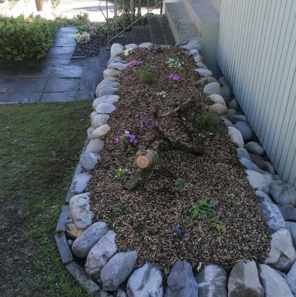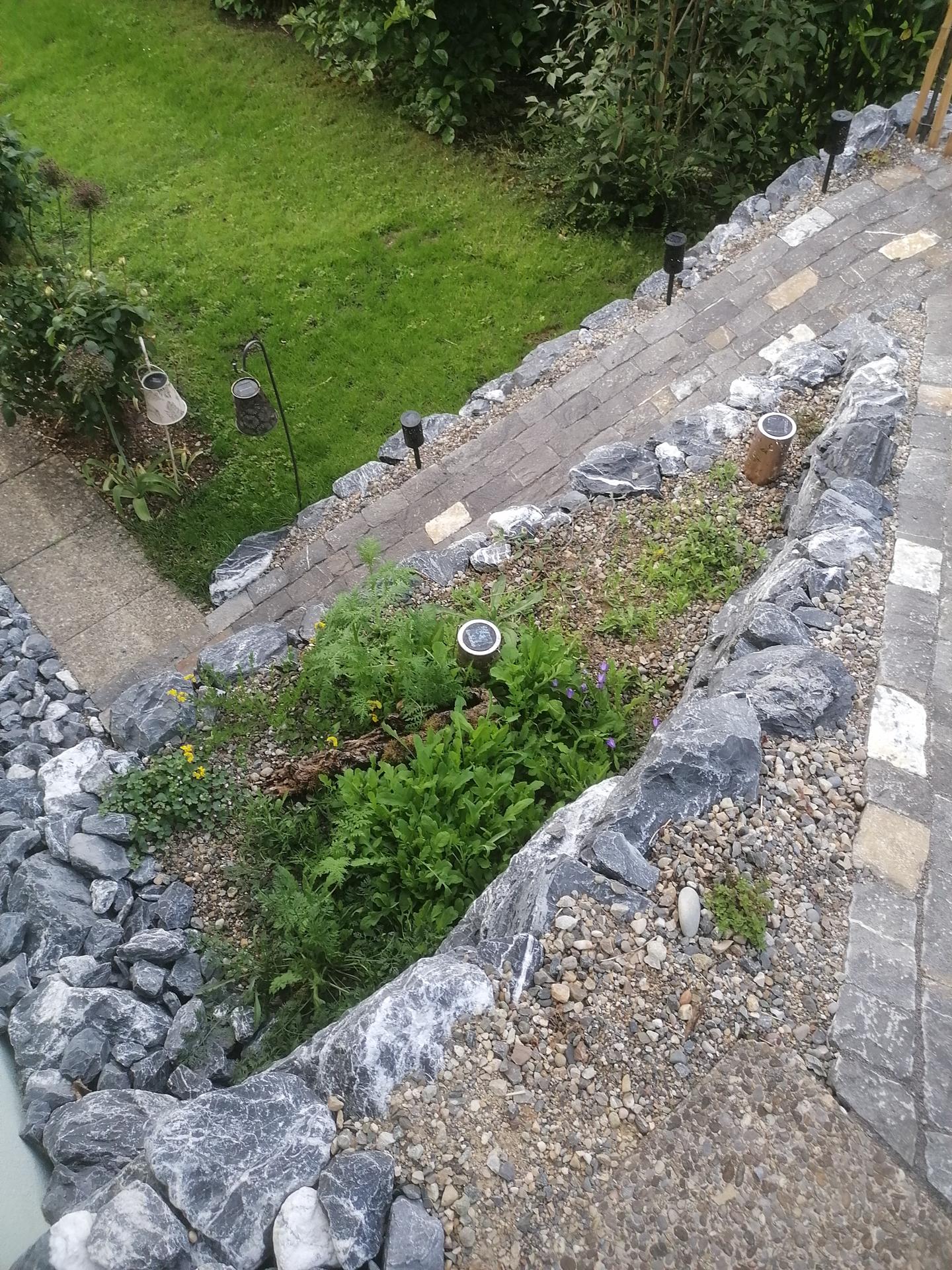 Ebenso eine schöne Kiesgartenbepflanzung auf den Ebenen.